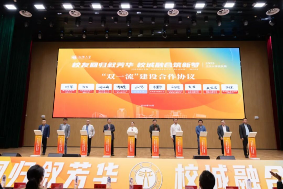 景新华在致辞中介绍了学校发展情况及取得的成绩。大会聚焦“校友回归”与“校城融合”两大主题,旨在推动“高质量发展”。这既是学校自身内涵式提升的高质量发展,也是城市与大学协同共进的高质量发展,广大校友是不可或缺的重要力量,校城深度融合是至关重要的路径选择。一是要凝心聚力,共绘“校友回归”新画卷。校友是母校最珍贵的财富,学校响应省委省政府“校友回归”专项行动,旨在激活这片宝库,为母校与城市发展注入活水。江大珍视每位校友带来的支持,也将与地方政府协同努力,打造最优的营商环境与孵化平台,让校友的智慧、资本与项目,都能在此寻得沃土、生根发芽,共同奏响个人理想、学府使命与城市繁荣的雄浑乐章。二是要协同赋能,谱写校城融合新篇章。推动校城融合,核心在于构建“共生、共荣、共享”的发展共同体。要在人才培养上同向同行,在科技创新上同频共振,在文化建设上互促共进。学校将以最大诚意,搭建平台,完善服务,欢迎每位校友“回家”;将以最实行动,深化与各方的合作,推动校城融合走深走实、结出硕果;将以最高标准,提升办学质量和水平,培养更多优秀人才,产出更多创新成果。