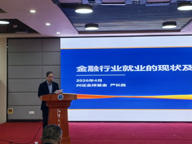 为搭建校友与在校学子的沟通桥梁,帮助学子精准把握金融行业发展态势、明晰职业成长方向,2026年4月2日下午,江汉大学“学长归来”分享会在师生活动中心301综合报告厅顺利举行。我校91级校友、兴证全球基金副总经理严长胜受邀担任主讲嘉宾,社会合作与校友工作处处长李卫东、副处长潘心纲,商学院党委副书记王超,智能制造学院党委副书记陈曦及100余名学生代表出席活动,本次分享会由社会合作与校友工作处处长李卫东主持。